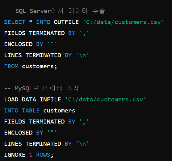 예시 1: SQL Server에서 MySQL로 데이터 이전